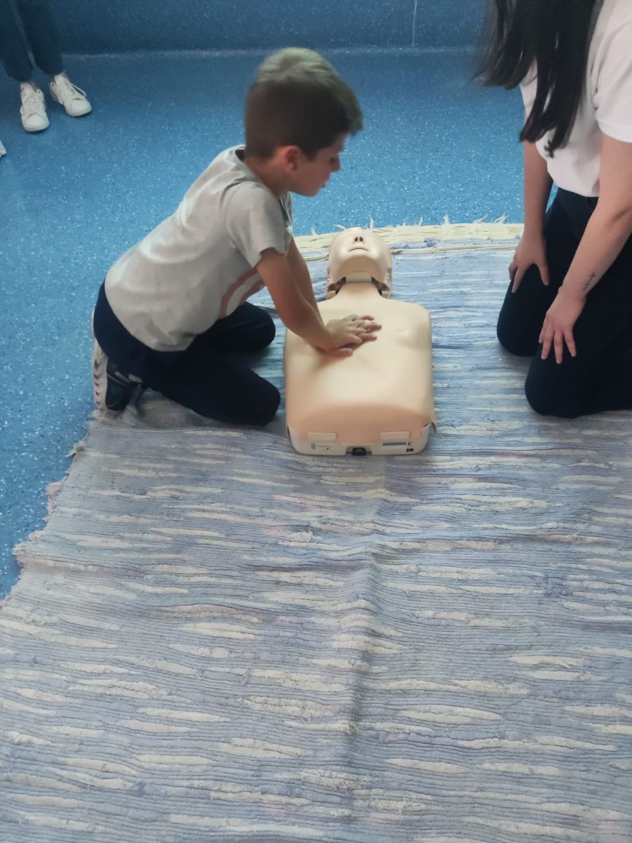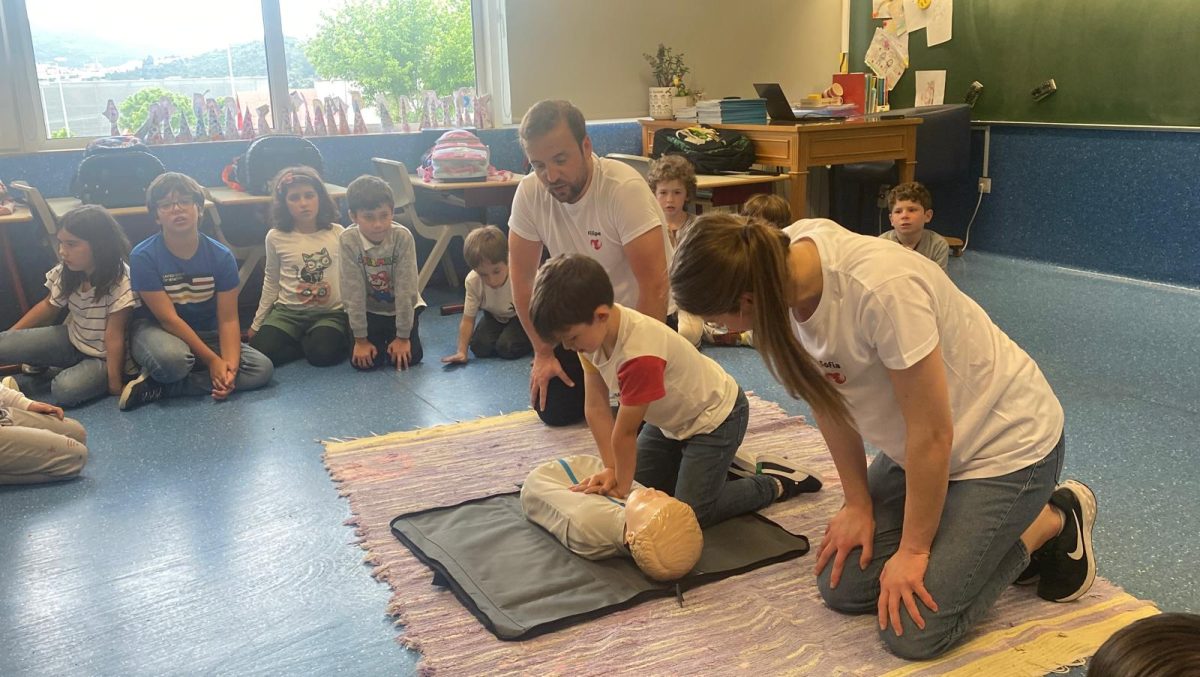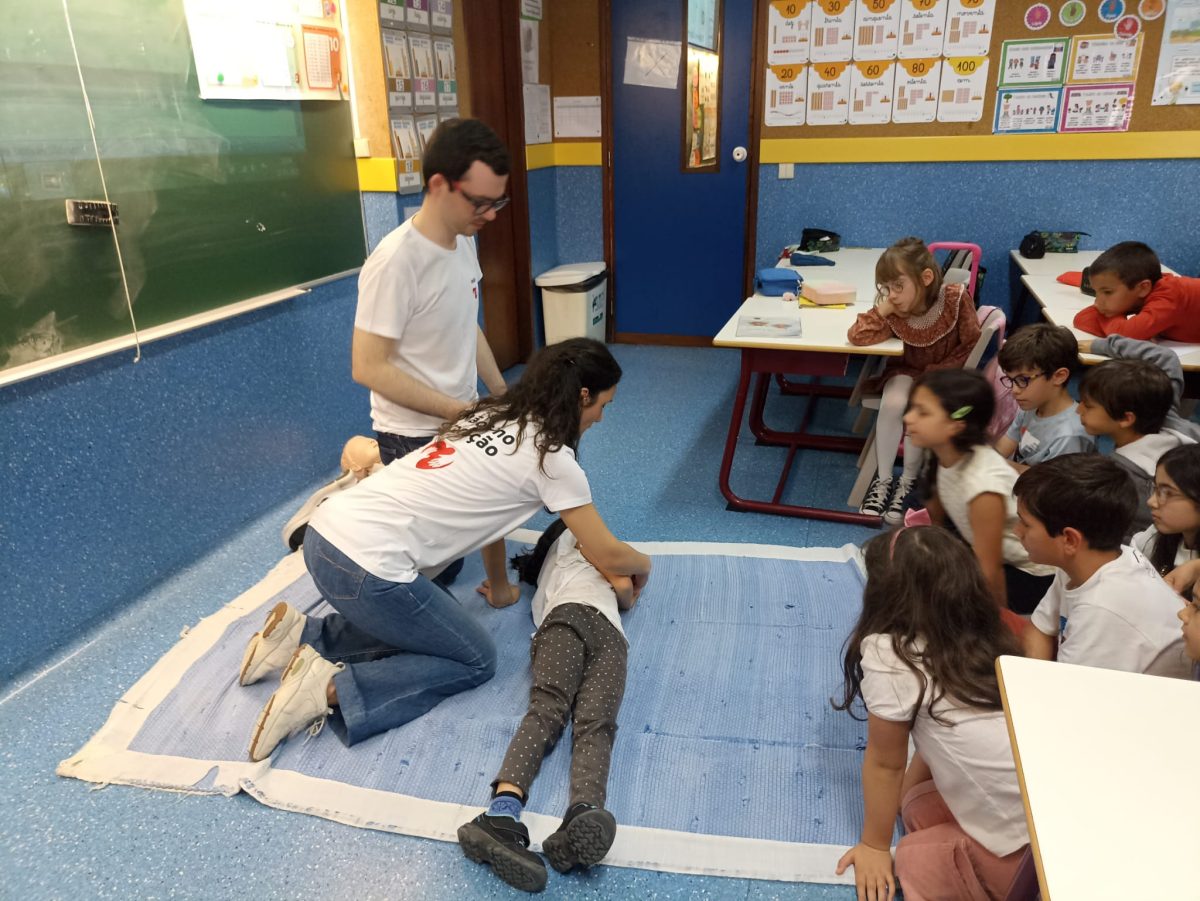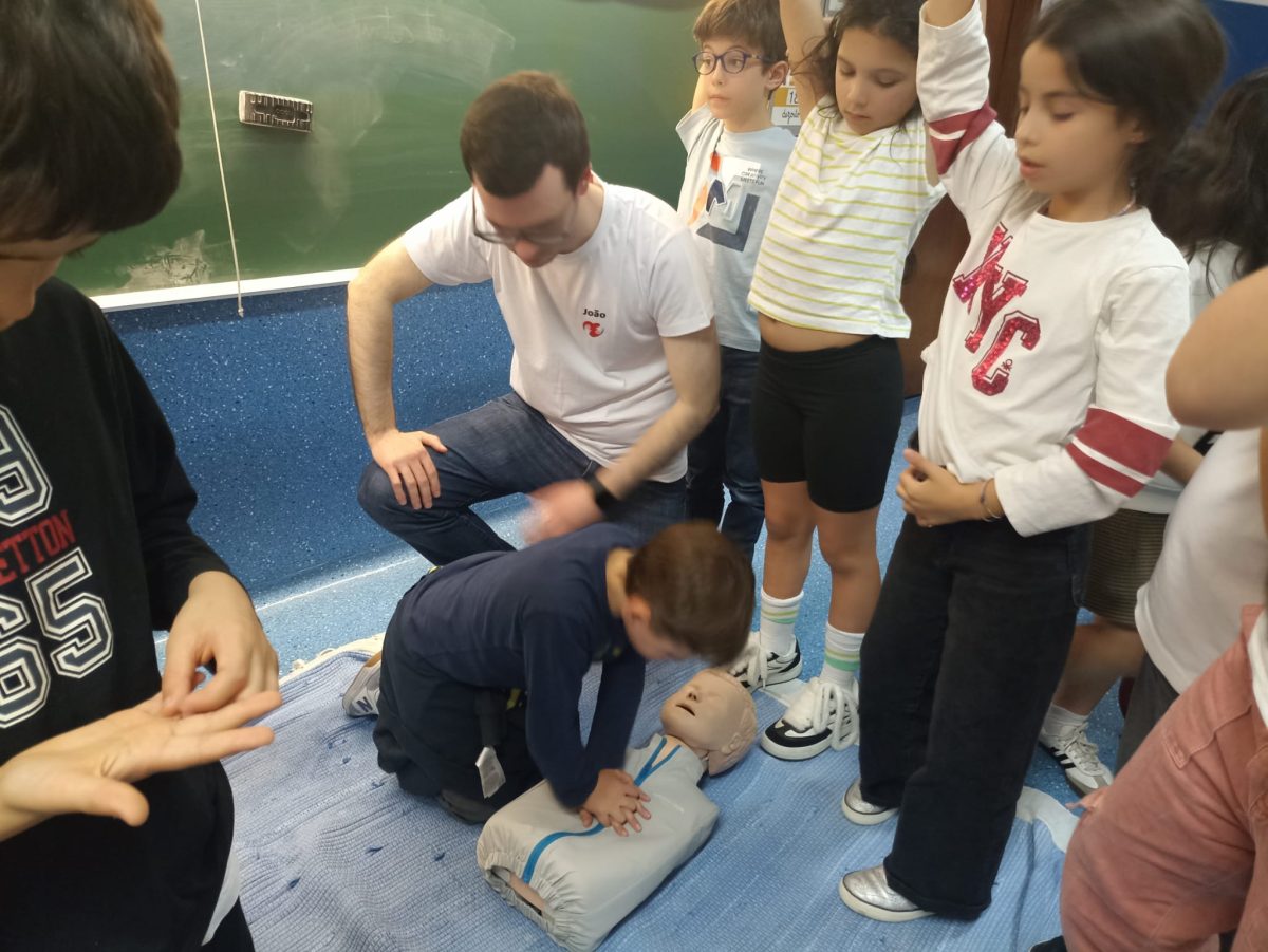 Os alunos aprenderam o modo de agir em segurança e conheceram os procedimentos e manobras a adotar em caso de doença súbita, com recurso a um manequim de RCP (Reanimação Cardiopulmonar). Experimentaram fazer as compressões torácicas e, simultaneamente, de forma oral, recapitularam e reforçaram todos os procedimentos de segurança e socorro. No final da sessão, receberam o livro “Vou-te Salvar: Suporte Básico de Vida”, material gentilmente oferecido pela Sociedade Portuguesa de Cardiologia (SPC).