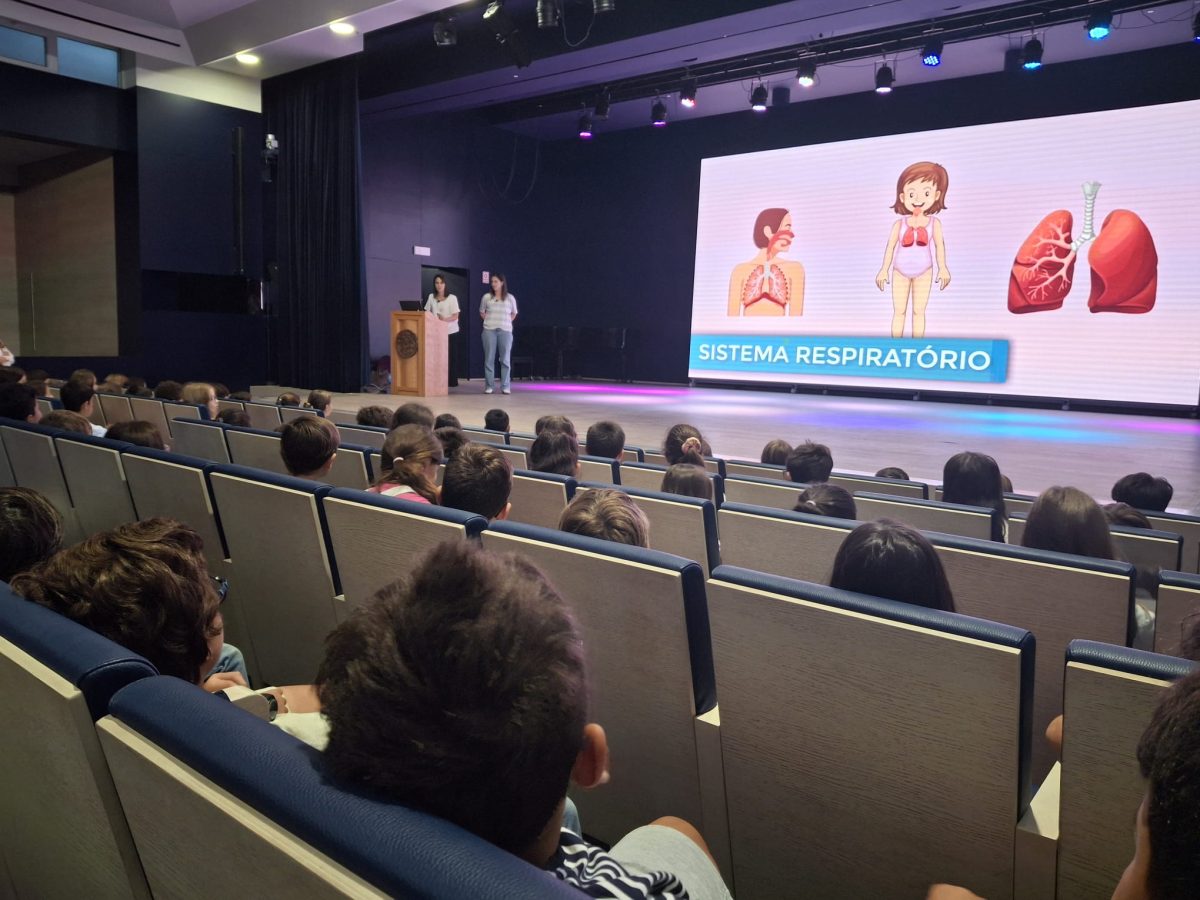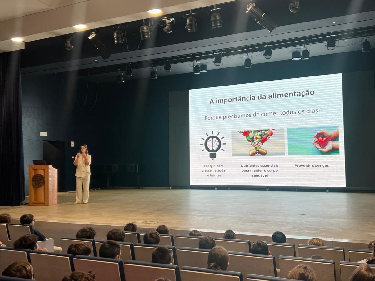 Para encerrar a Semana da Saúde, a médica de família Dra. Maria João Barbosa e a pediatra Dra. Alexandra Sequeira conduziram a sessão “Cuidar do corpo para crescer feliz”, reforçando a importância de rotinas saudáveis no dia-a-dia.