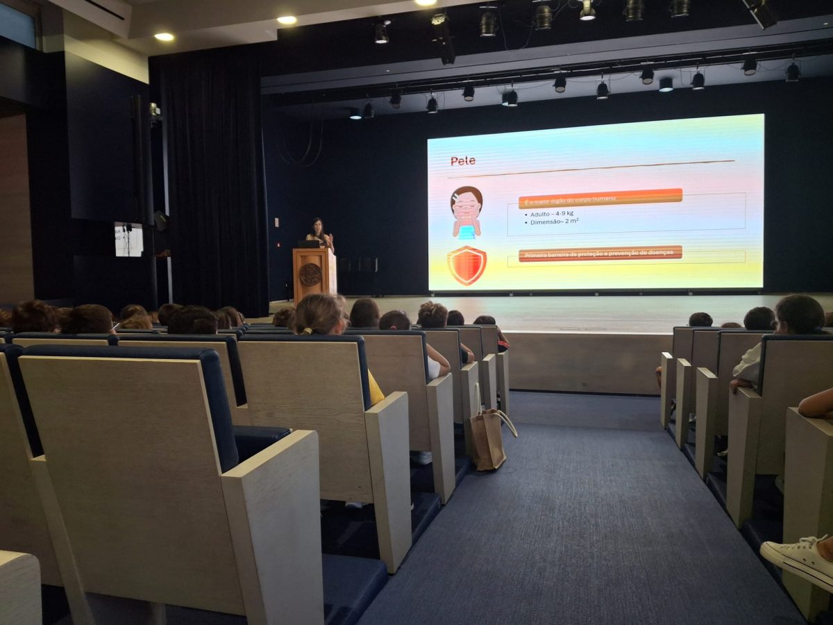A dermatologista Dra. Olga Ferreira apresentou a palestra “A pele e o sistema excretor: como o corpo se limpa e se protege”, explicando, de forma bastante clara, como a pele desempenha um papel essencial na defesa do organismo e esclarecendo todos os cuidados que devemos ter com o maior órgão do nosso corpo.